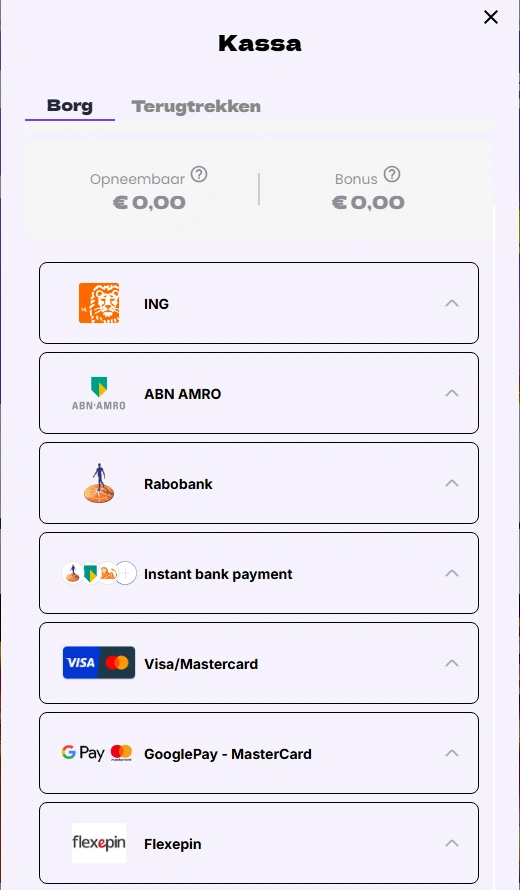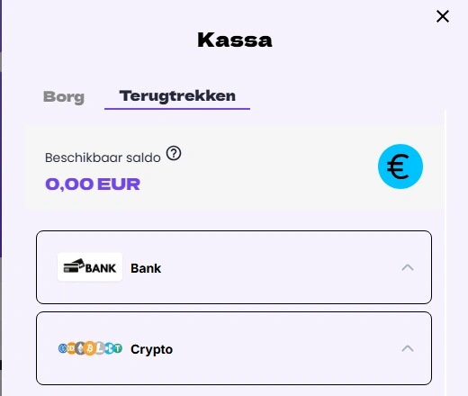 Uitbetalingslimieten | €2.500/dag, €5.000/week, €20.000/maand |