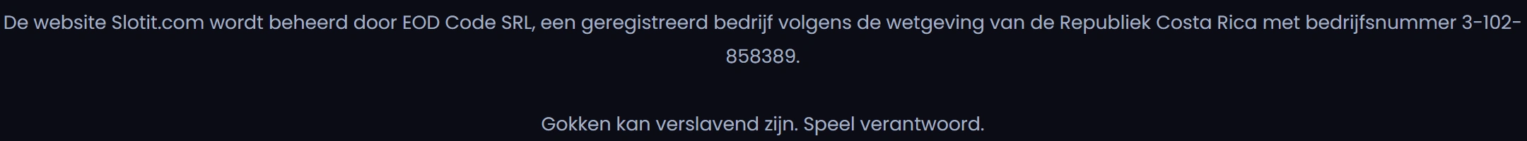 Snel overzicht: Slotit Casino biedt een 200% welkomstbonus tot €5.000 + 10 gratis spins, uitgebreid spelaanbod en wekelijkse cashback. Opgericht in 2025 onder EOD Code SRL in Costa Rica.